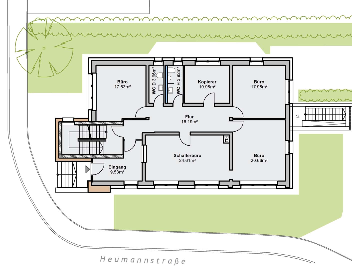 Aufstockung eines erdgeschossigen Verwaltungsgebäudes aus dem Baujahr 1984 um ein Geschoss in Holzbauweise