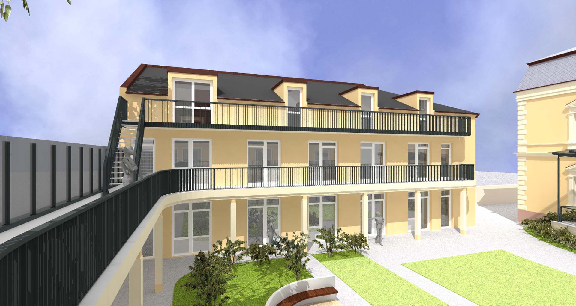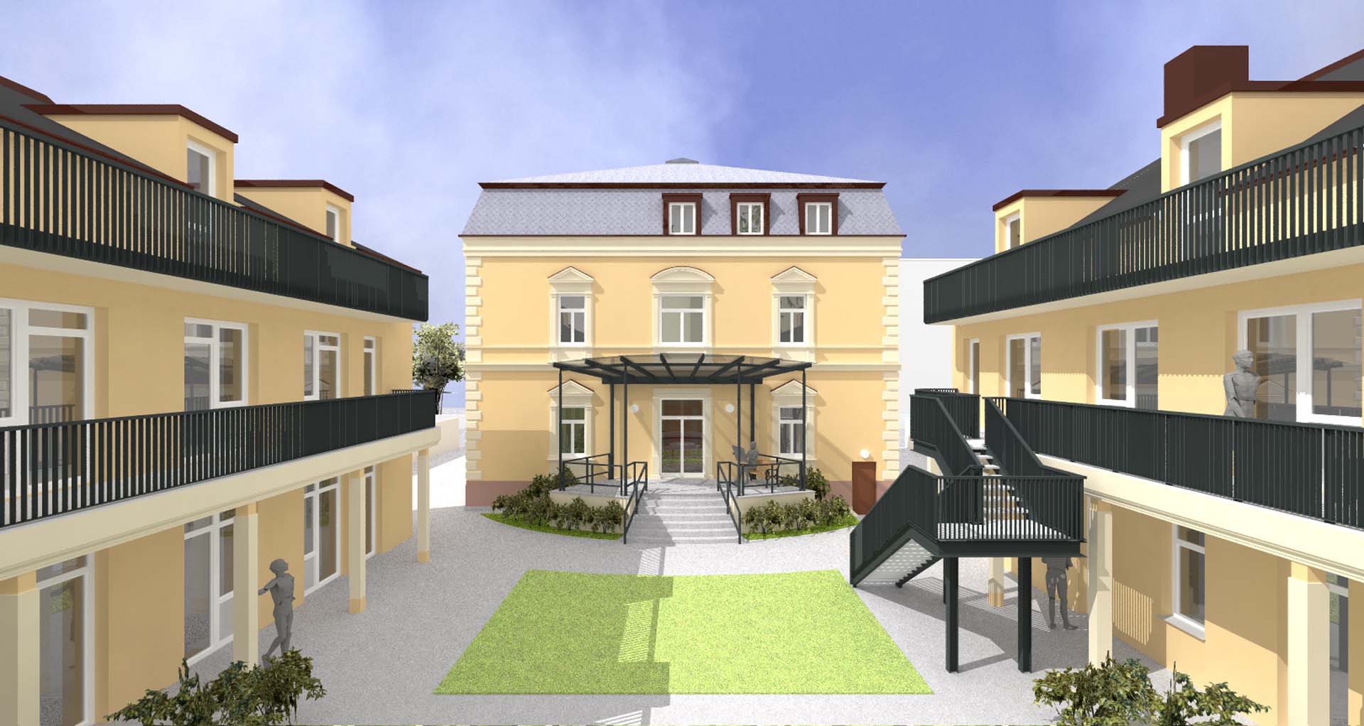 Generalsanierung, Ausbau und Erweiterung der Villa inkl. Nebengebäude aus dem späten 19. Jahrhundert zur Einrichtung für ambulant Betreutes Wohnen für Männer.