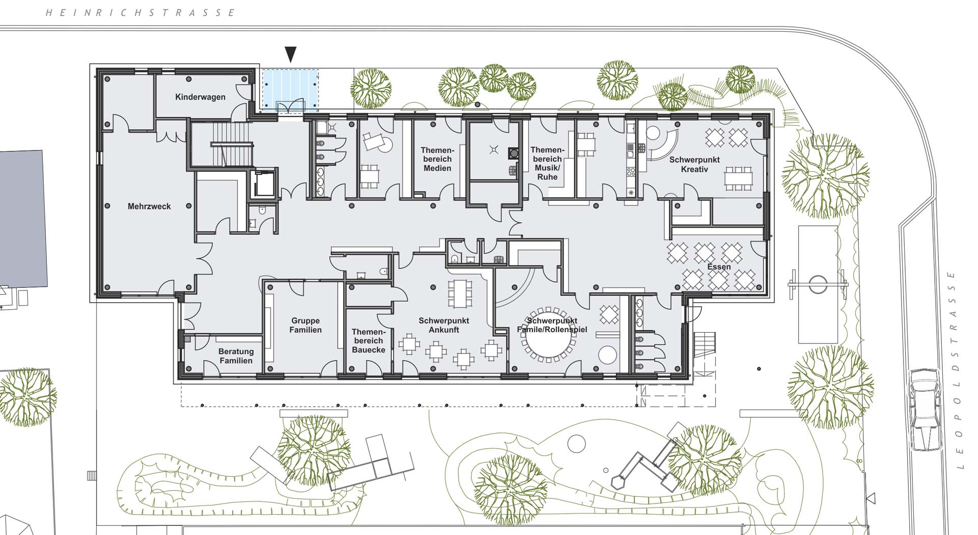 Ersatzneubau Familienzentrum mit 4‑gruppigem Kindergarten und 2‑gruppiger Kinderkrippe