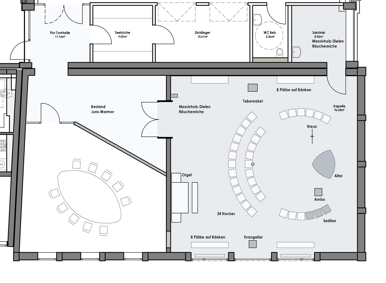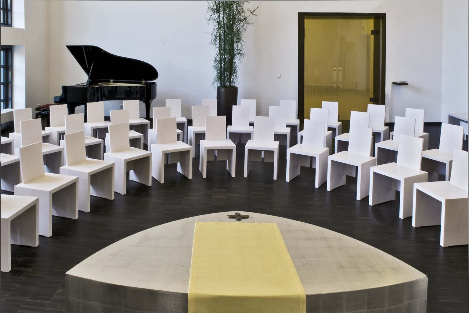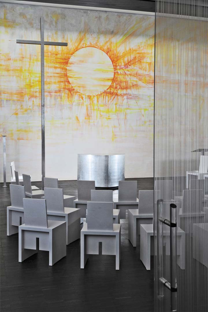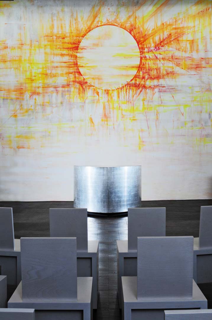 Künstlerische Gestaltung von Wandbild, liturgischen Gegenständen und Fenstern in Planungsgemeinschaft mit Reinhard Zimmermann