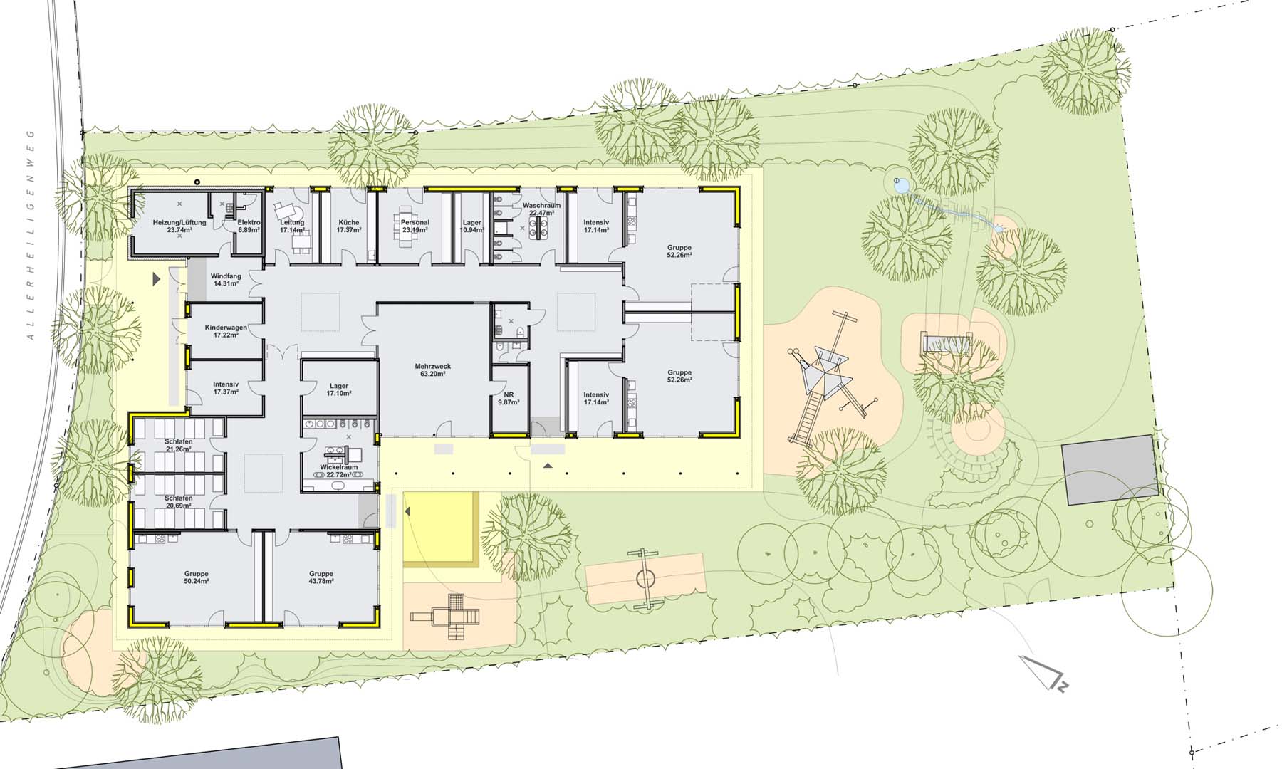 Ersatzneubau Kindertagesstätte mit 2‑gruppigem Kindergarten und 2‑gruppiger Kinderkrippe